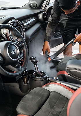 Un nettoyage minutieux réalisé à la main, jusque dans les moindres détails. De la sellerie aux moquettes, chaque surface est traitée avec soin pour un intérieur sain et un extérieur impeccable.